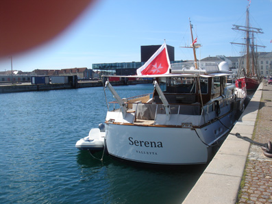 Denne lækre lille yacht hedder Serena og har hjemhavn i Valletta i Malta, men i dag lå den heldigvis ved Amaliehaven i København, hvor den var genstand for mange beundrende blikke. Det er et rigtig hyggeligt skib, og selv om det ikke er verdens største yacht, så er jeg sikker på, at man sagtens kunne tilbringe en sommer ombord på dette dejlige skib. Jeg kunne i hvert fald godt tænke mig sådan en, men den koster sikkert en hel del mere, end hvad jeg har råd til, så jeg må nøjes med at kigge, mens jeg drømmer, at det var mig der kunne sejle rundt til Europas havne med sådan en lækker yacht. Jeg mener ikke, at jeg tidligere har set Serena, men sådan et dejligt skib skal da altid være velkommen til at lægge til ved Amaliehaven en anden gang, så vi igen kan nyde synet.